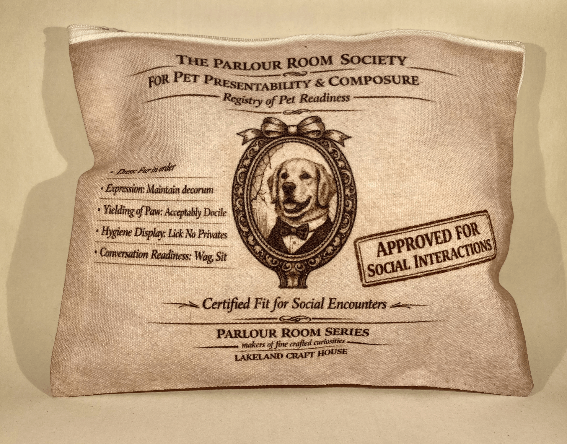 The Parlour Room Canine Presentation Bag is a tribute to the household greeter - the dog who escorts guests, supervises kitchens, monitors snacks, and considers every visitor a personal appointment.